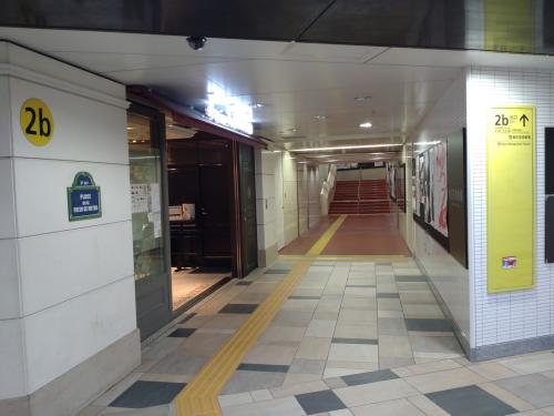 ③左側にある喫茶店を確認したらそのまま直進して1b出口で地上に上がってください。