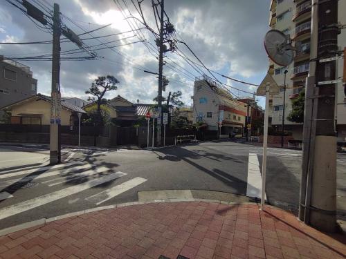 ⑪豊島産業会館プラザの前を横切ると大通りが終わるので、大通りを右側に渡る。